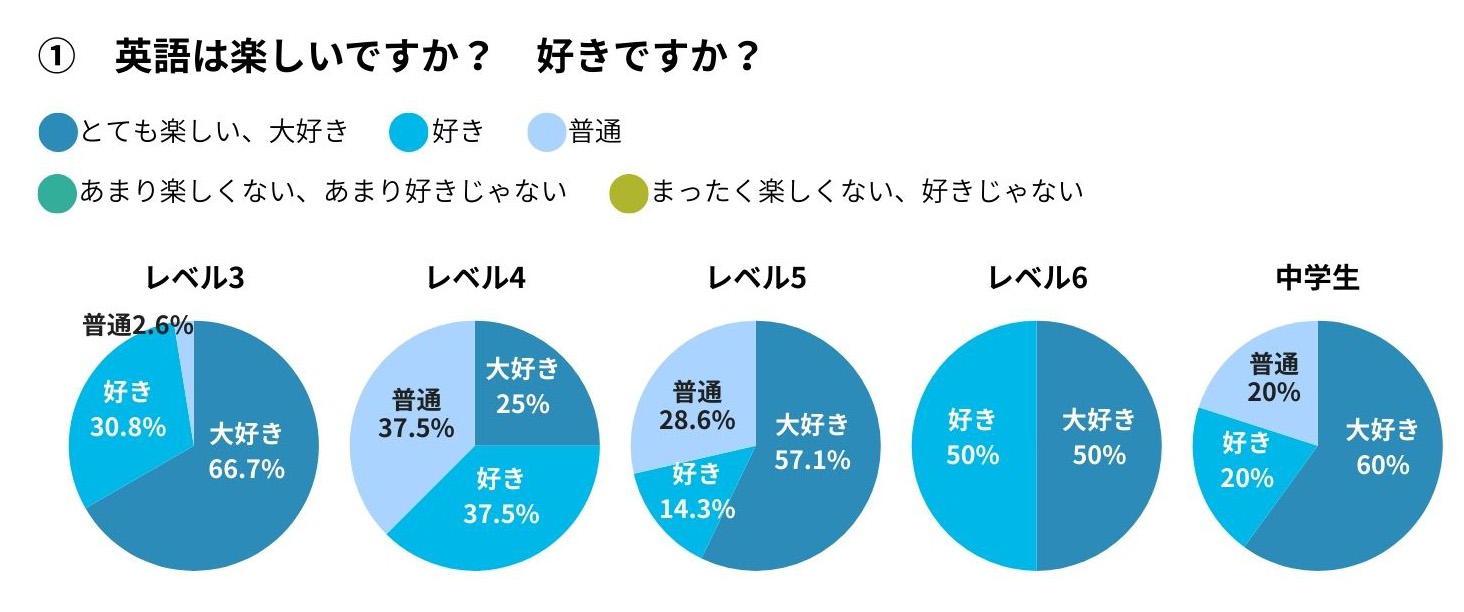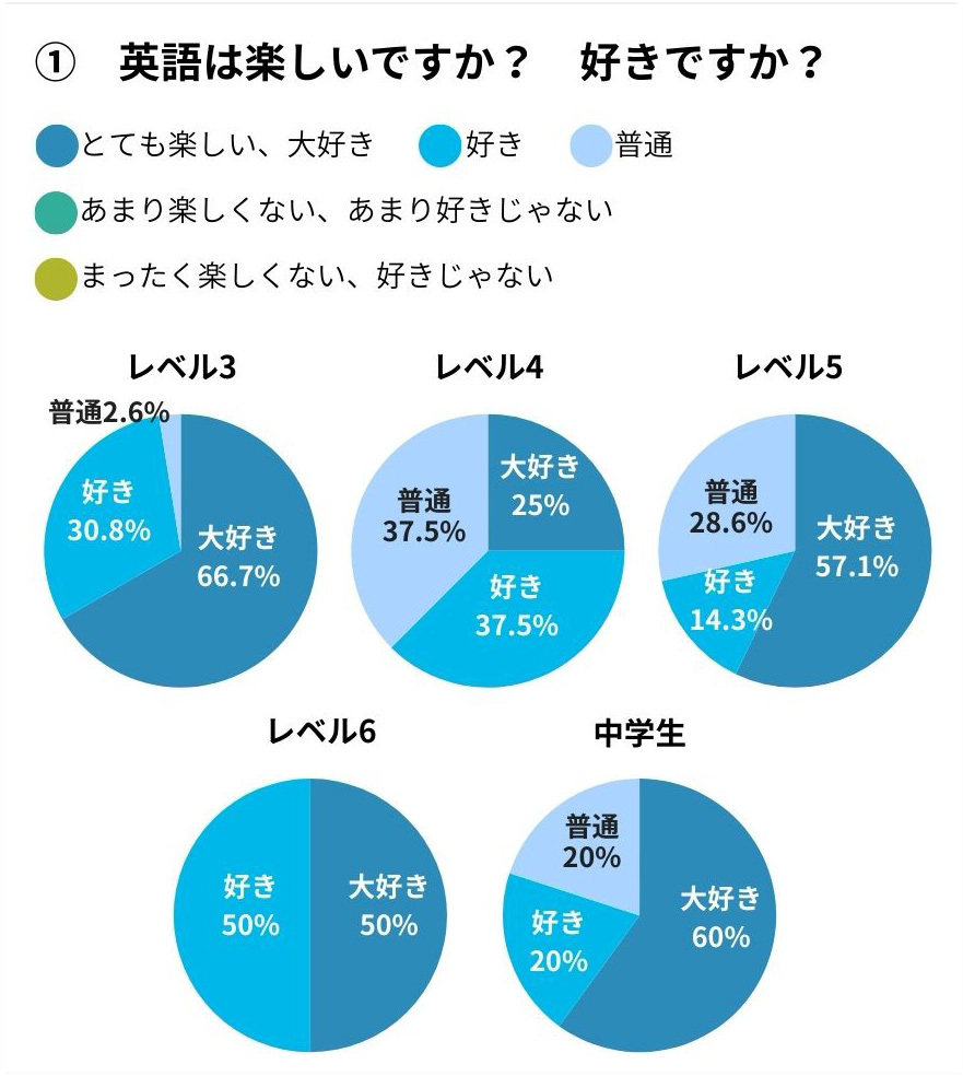レベル3では「とても楽しい・大好き」「楽しい・好き」が圧倒的多数。